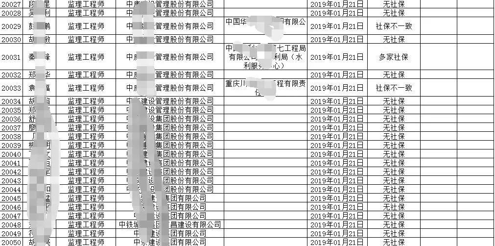 這個名單涉及到一、二級建造師、監理工程師注冊人員,問題為:多家社保、社保不一致和無社保。而名單直接公布的注冊人員共有20050人。沒錯,小編沒多打一個零,是兩萬多人。