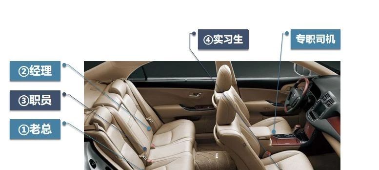 小轎車1號座位在司機的右后邊,2號座位在司機的正后邊,3號座位在司機的旁邊(如果后排乘坐三人,則3號座位在后排的中間)。