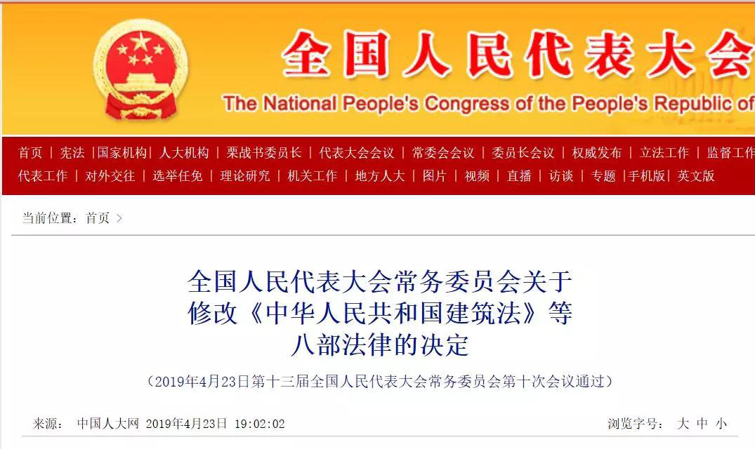 重磅消息 |《建筑法》《消防法》大調(diào)整,4.23日起施行!發(fā)布日期:2019-04-24