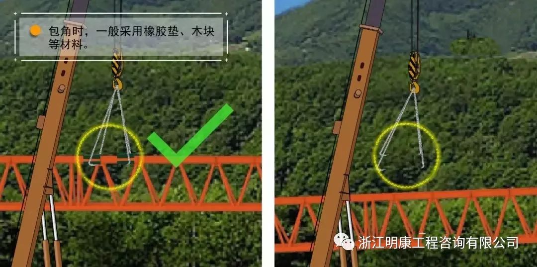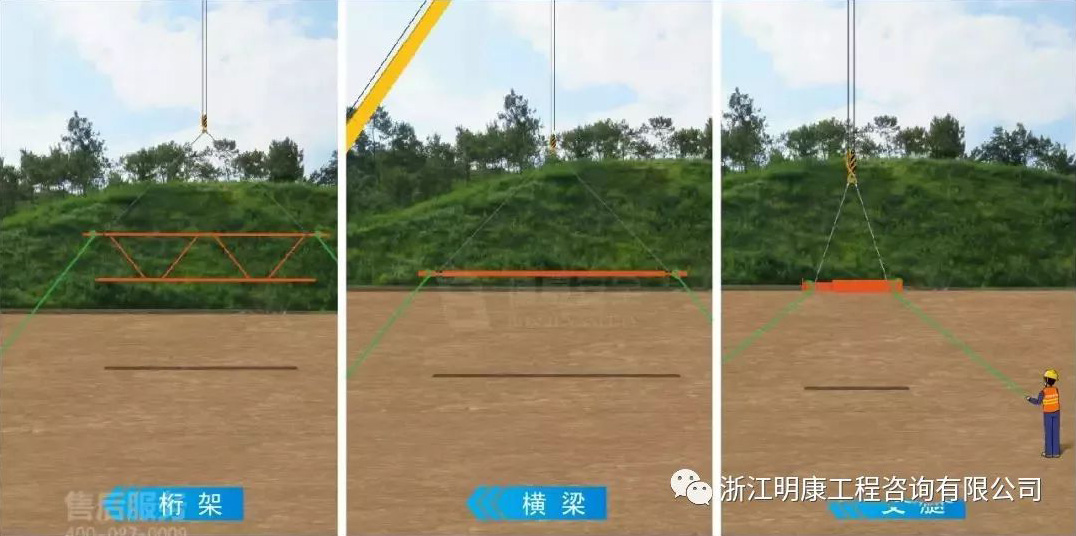 10、吊裝時吊點棱角處要包角,以免割斷吊索。正式起吊主、導梁等長、大、重吊件前,必須進行試吊。
