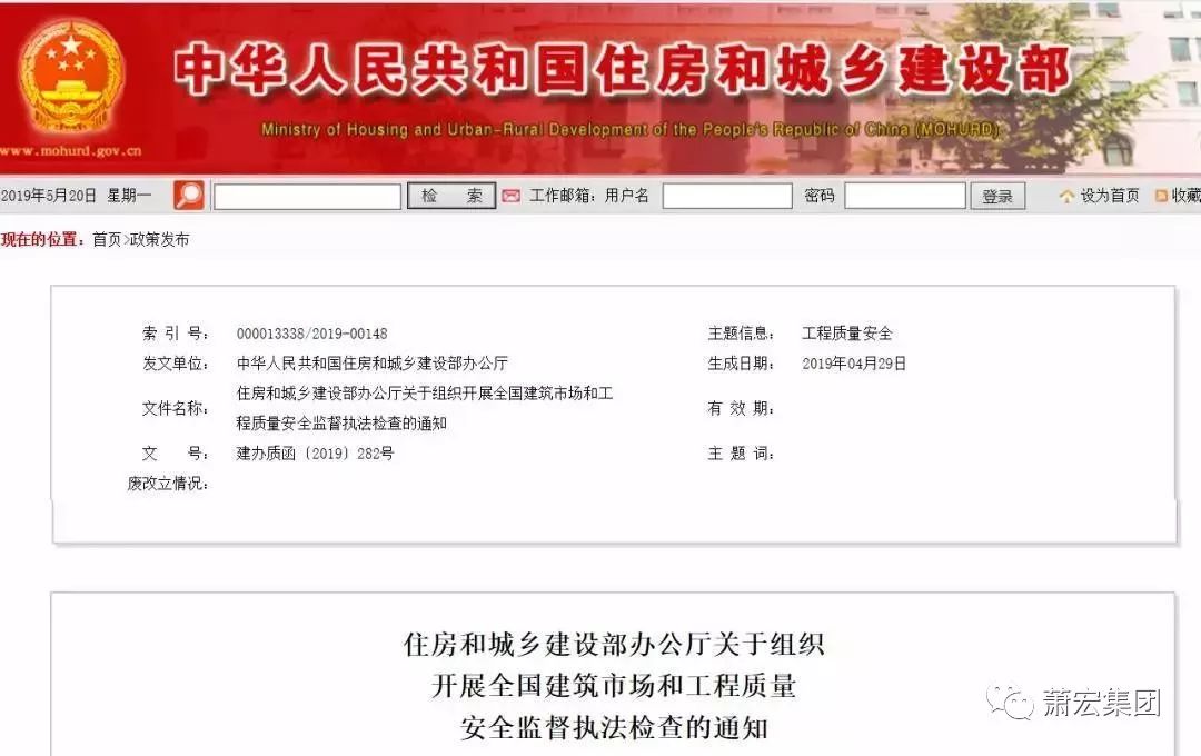行業咨詢▕ 住建部官網發文,全國大檢查來啦!發布日期:2019-05-22
