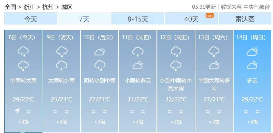未來(lái)3-5天浙中北地區(qū)又將有持續(xù)性強(qiáng)降雨過(guò)程,氣溫也將被打壓。從氣象臺(tái)發(fā)布的最新消息顯示,杭州今天夜里到明天,強(qiáng)降水來(lái)勢(shì)洶洶,淳安、建德、桐廬雨量較大,有暴雨、局部大暴雨,北部各區(qū)有大雨到暴雨。