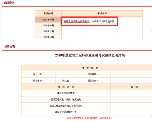 2019年度監理工程師資格考試成績于2019年7月17日發布。