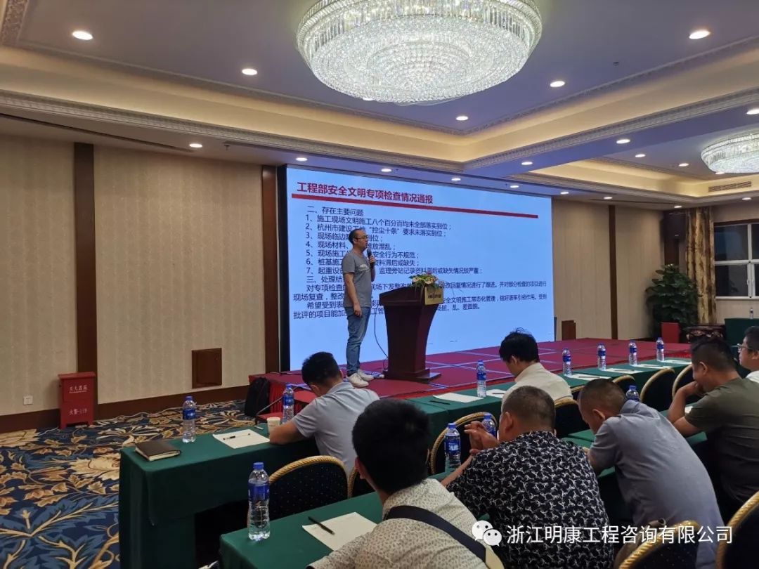 2019年7月13日下午13點(diǎn)30分,浙江明康工程咨詢有限公司“2019年上半年度總監(jiān)例會暨安全生產(chǎn)教育培訓(xùn)會”在杭州市第一世界大酒店順利召開。
