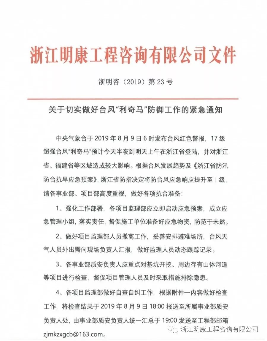 應(yīng)對臺風(fēng)王“利奇馬”的到來,明康咨詢總部立即發(fā)出緊急通知: