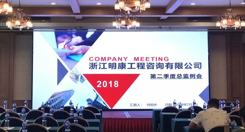 2018年7月7日下午13點30分,浙江明康工程咨詢有限公司第二季度總監(jiān)例會在杭州第一世界大酒店順利召開。