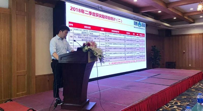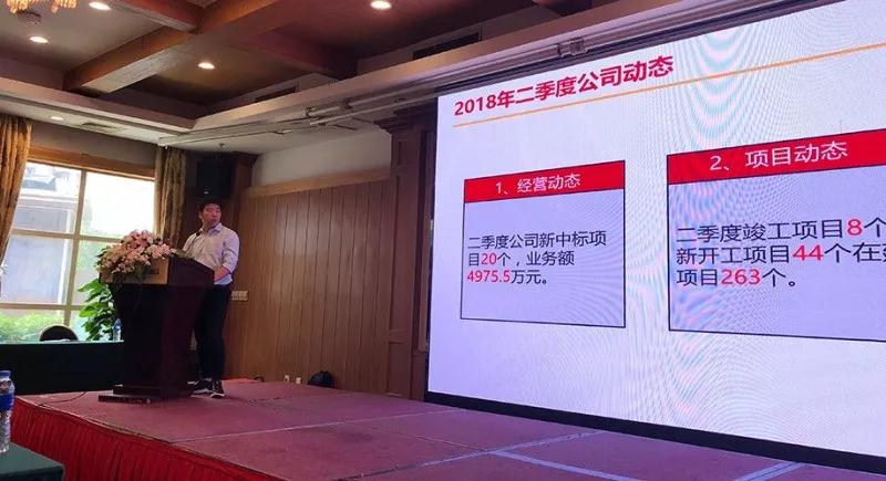 會議開始,由公司工程部經理何伯豐對公司近期獲得的榮譽進行宣布,以及對二季度公司項目動態(tài)、行業(yè)動態(tài)進行數(shù)據統(tǒng)計分析,結合工程部二季度工作中發(fā)現(xiàn)的問題進行總結匯報和后期工程部對項目考核的調整,工作計劃的說明;