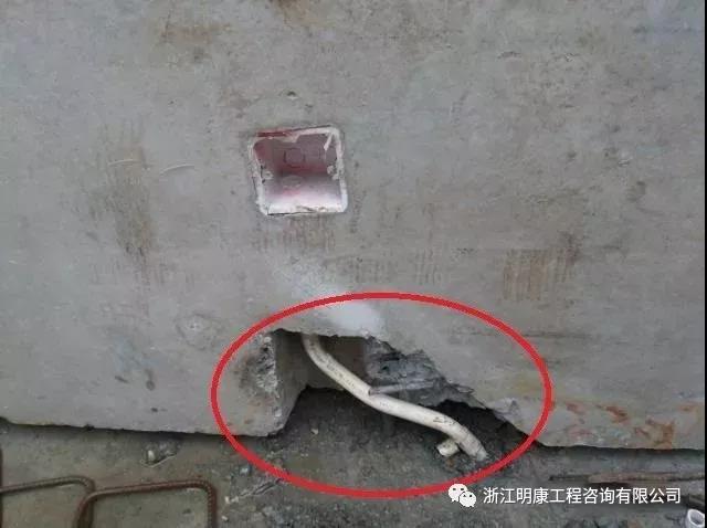 現場發現部分預制構件預埋管缺少、偏位等現象,造成現場安裝時需在預制構件鑿槽等問題,容易破壞預制構件