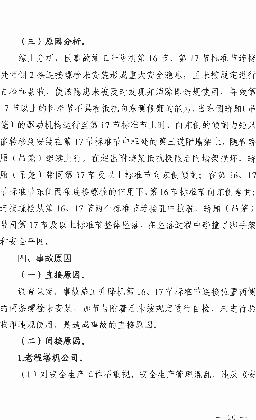 近日,河北省安全生產委員會辦公室公布了調查結果,讓人唏噓不已的是,僅僅是因為2節升降機標準節處的2條螺栓未安裝,就造成了11人殞命的結局。