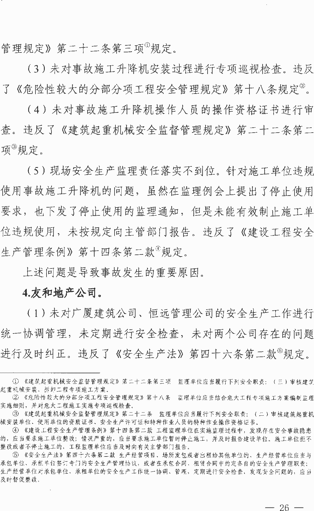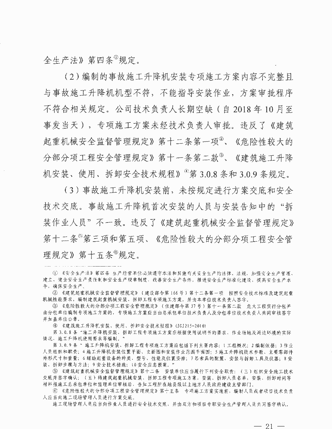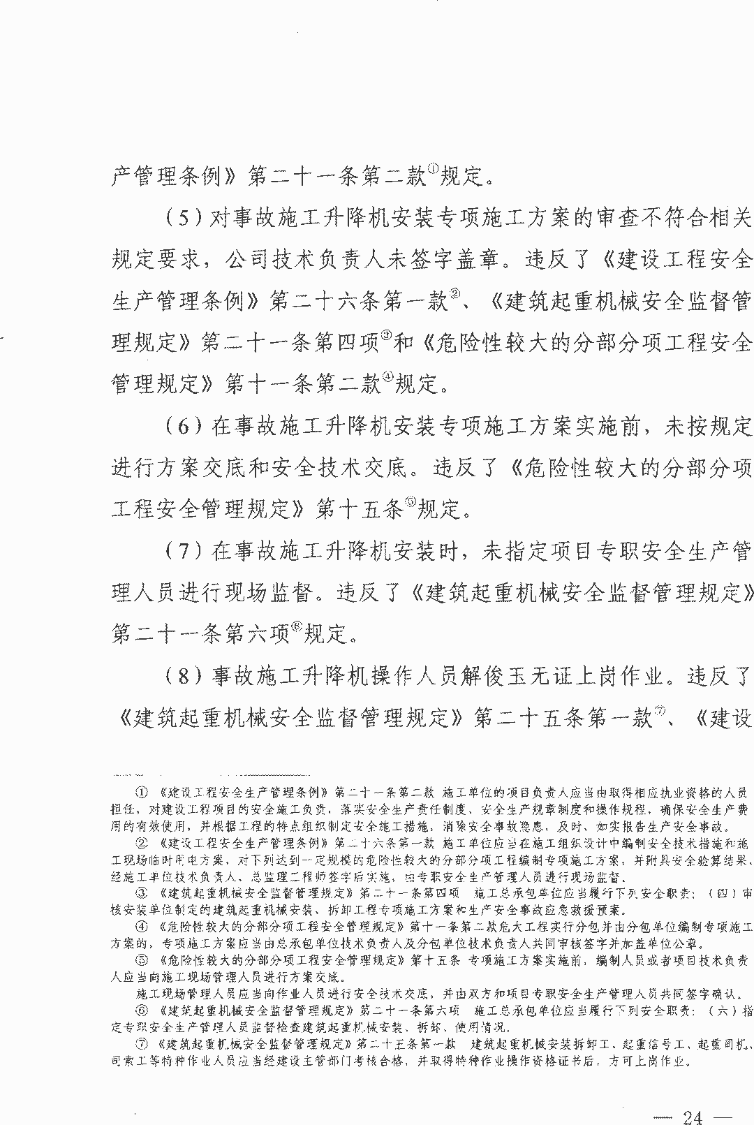 施工升降機安裝單位:吊銷資質,150萬元罰款。監理單位:降低資質,110萬元罰款,法人予以29875元罰款。建設單位:110萬元罰款,法人予以177791元罰款。