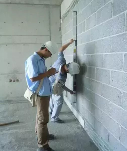 【說明】砌筑過程中,要求經常用靠尺和線錘檢查墻體的垂直平整度,發現問題在砂漿初凝前用木錘或橡皮錘輕輕修正。