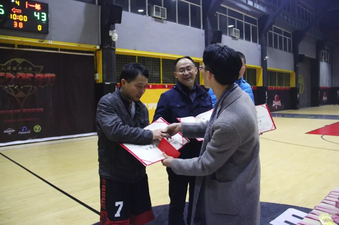 作為傳承,由上屆最有價值球員方聞為呂怡鵬頒發MVP獎杯,并贈予寫有明康十一部籃球隊全隊簽名的籃球,比賽是五個人的,這個球蘊含著明康十一部籃球隊的精神與榮耀!讓我們為他們喝彩!
