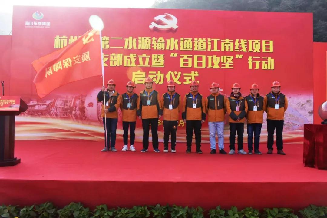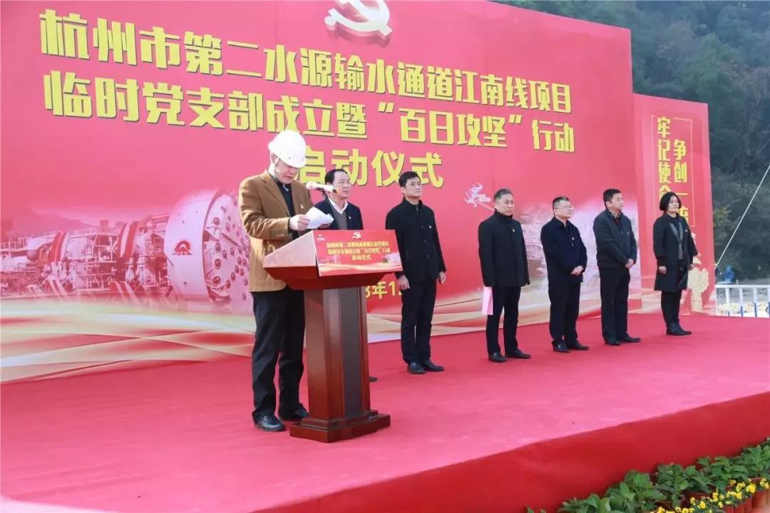 為積極發(fā)揮項(xiàng)目臨時黨支部的戰(zhàn)斗堡壘作用和黨員先鋒模范作用,確保杭州市第二水源輸水通道江南線工程安全、優(yōu)質(zhì)、高效、快速地推進(jìn),12月17日上午,杭州市第二水源輸水通道江南線項(xiàng)目臨時黨支部成立暨“百日攻堅”行動啟動儀式在江南線山嶺段滕村支洞前廣場隆重舉行。