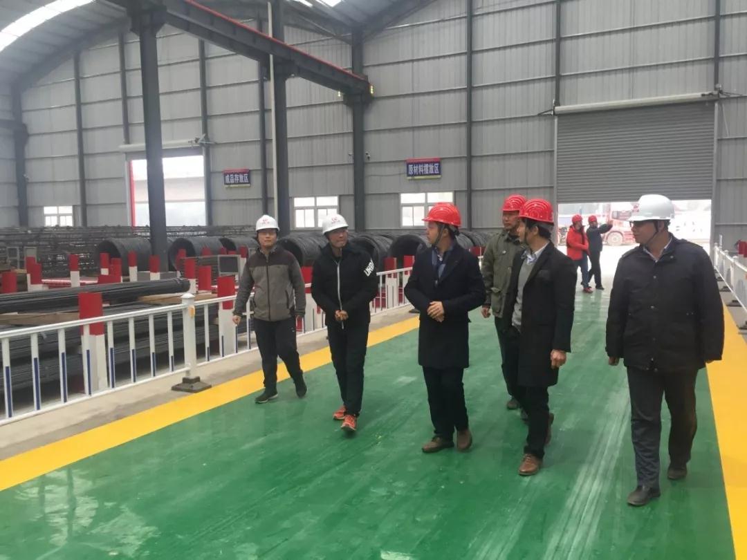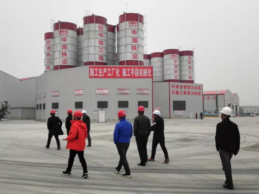 由中鐵三局二分部項目部副經理等一行陪同翁總參觀鋼筋加工廠及混凝土拌合站。