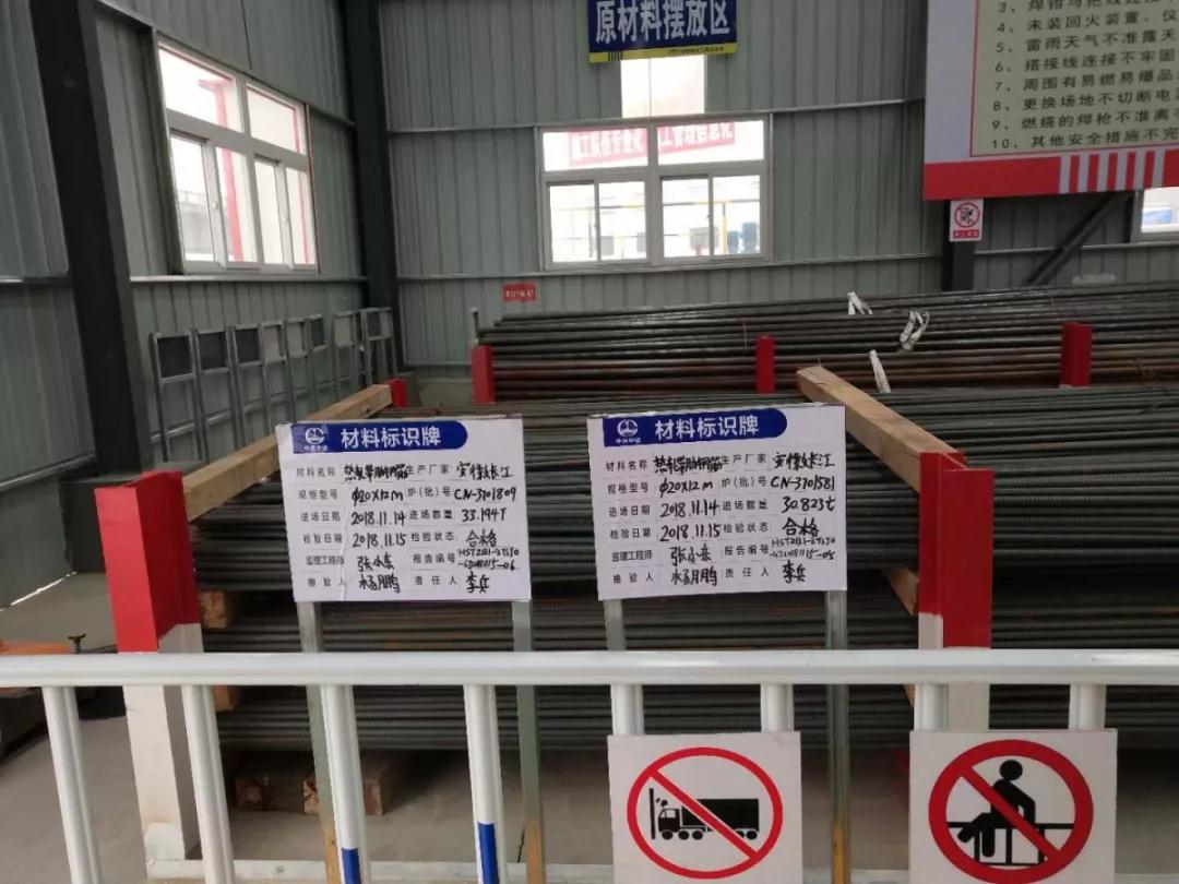 料場材料一目了然、分類清晰,未檢和已檢區分明晰且容量及標識標牌內容清晰。
