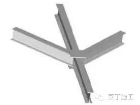 結(jié)構(gòu)陽角處懸挑工字鋼交匯,無法保證伸入端長度時,在交匯處采用兩側(cè)工字鋼與陽角處工字鋼焊接,上下各增設(shè) 一200mm×200mm×10mm鋼板,所有接觸點必須滿焊,焊腳高度不得小于 8mm,且不得有氣孔、夾渣、漏焊等現(xiàn)象,如下圖所示。
