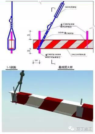 2)角部懸挑部分應(yīng)設(shè)置鋼絲繩兩道。