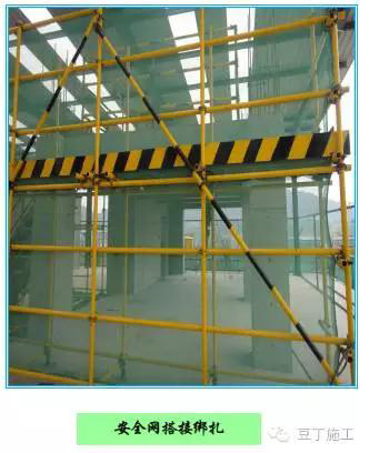 2)選用塑料扣或尼龍繩張掛安全網(wǎng),要求嚴密、平整;作業(yè)層下用安全平網(wǎng)嚴密防護,施工層以下每隔10m以內(nèi)封閉一次。