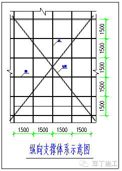 腳手架的縱向傳力結(jié)構(gòu)架構(gòu)件限制不能形成封閉形。如“凹”字型的腳手架,其兩端必須設(shè)置橫向支撐。并于中間每隔六個間距加設(shè)一道橫向支撐,如圖所示。