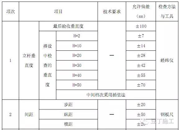 3)立桿的垂直偏差應(yīng)控制在不大于架高的1/400。