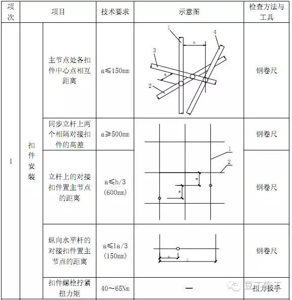 1)桿件的設(shè)置和連接,連墻件、支撐、門洞等的構(gòu)造是否符合要求。