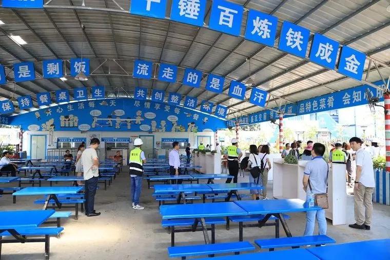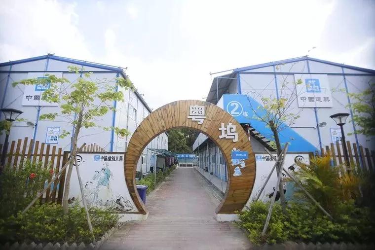 工友村占地面積 8600 平米,綠化率達 50%,可以滿足 1180 名勞務工人入住。形成以“川苑、粵塢、桂邸、湘庭、閩閣、陜院”為名的單體村落。