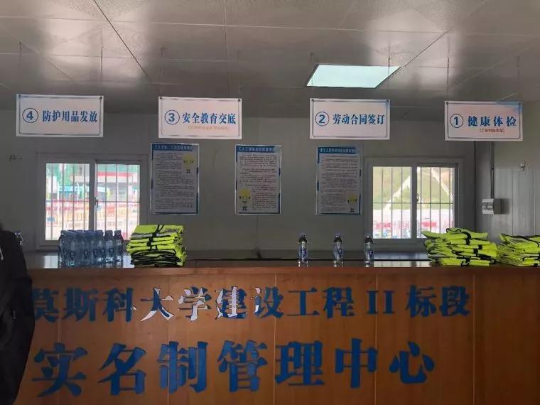 北里莫斯科大學項目工地實名制管理中心,每一位入職以前都要先在這里辦理注冊登記和實名認證,體檢、領取防護設備并進行崗前培訓。