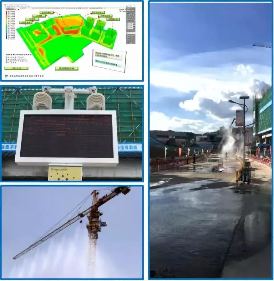 工地環境監測系統,一旦檢測到工地揚塵超標,自動噴淋系統就會進行灑水降塵。